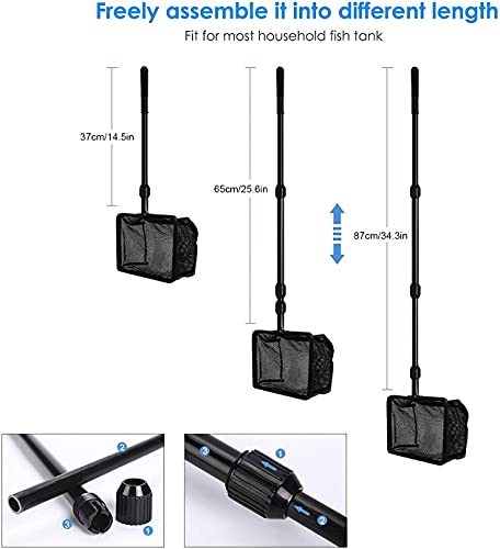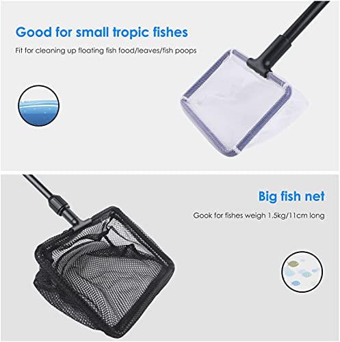 【Tank Cleaning Kit】Aquarium cleaning set bevat 1 verstelbare handgreep, 1 visnet, 1 lepelnet, 1 algenschraper voor glazen tank, 1 platte borstel met spons, 1 plantenvork, 1 grindhark. Biedt alles wat u nodig heeft om uw tank schoon te maken en te onderhouden.