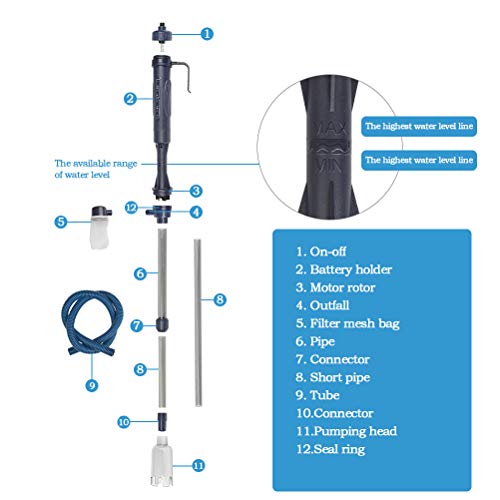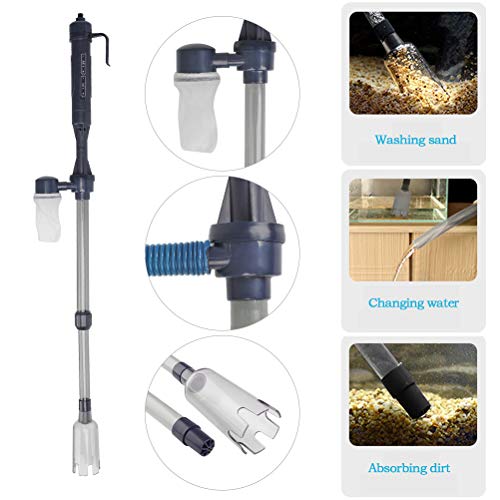 Multi van Clean Mode: Vis tank reiniger wordt geleverd met zachte buis, filterzak, kan snel en gemakkelijk om water te verwisselen, grind schoon te maken en algen te verwijderen, om vispoep op te zuigen of dode waterplantenbladeren. Wij raden aan om de 10 dagen 10 -15% water in de tank te vervangen.